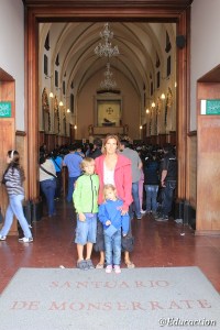El barrio de La Candelaria en Bogotá posee un encanto especial. El empedrado de sus callecitas convierte en romántico cualquier recorrido, los balcones y los patios coloniales hacen que te enamores de la zona desde el primer momento en que te adentras en él. Nos sentamos delante de una de las innumerables iglesias, degustamos ese delicioso cafecito colombiano, ¡ummmm! ¡Que sabor mas especial!. Nos sumergimos en el Museo del Oro y descansamos en la Plaza Bolivar, donde un actor callejero nos deleitaba haciéndonos bromas con esa ironía fina, que utilizan los colombianos frente a los españoles. Finalmente sucumbimos ante el recorrido abrazando este barrio histórico, del que sin lugar a dudas nos dejo un gran sabor de boca a pesar de las protestas varias de Ishi y Noa con ganas de llegar a casa y ponerse por fin sus pijamas.